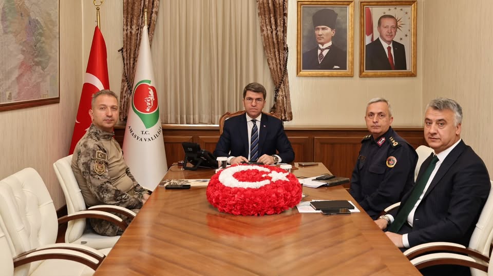 Amasya Valisi Önder Bakan’da toplantıya katılırken, Vali Bakan’a İl Emniyet Müdürü, İl Jandarma Komutanı ve İl Milli Eğitim Müdürü de eşlik etti.