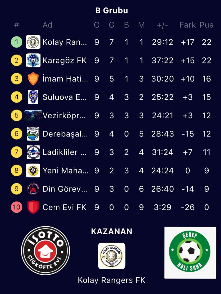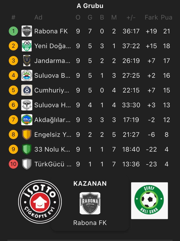 Play-off mücadelesi ise 21 Aralık 2025 Pazar günü saat 19:30 da Şeref Halı Saha tesislerinde başlayacak.