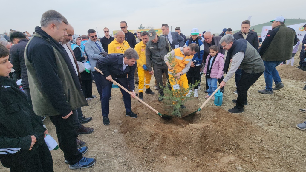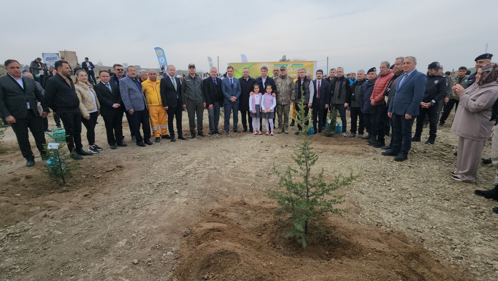 Konuşmaların ardından Vali Bakan öğrenciler ile 11 Kasım Milli Ağaçlandırma Günü kapsamında oluşturulan 35 dönümlük bir alanda sedir, karacam, dişbudak ve iğde olmak üzere 4 bin adet fidan toprakla buluşturarak can suyunu verdi.