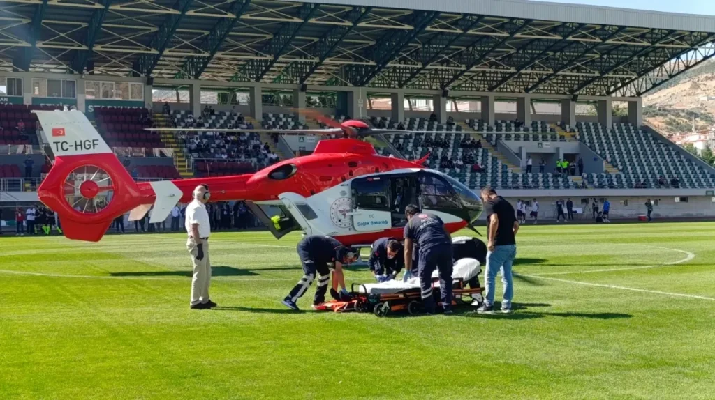 Samsun Eğitim Araştırma Hastanesine sevkine karar verilen Bakır için Sağlık Bakanlığı’na bağlı ambulans havalandı. Amasya 12 Haziran Stadyumunda oynanacak Ziraat Türkiye Kupası maçından hemen önce stadyuma inen ambulans helikopter, 70 yaşındaki hastayı Samsun’a götürdü. Amasyaobjektif