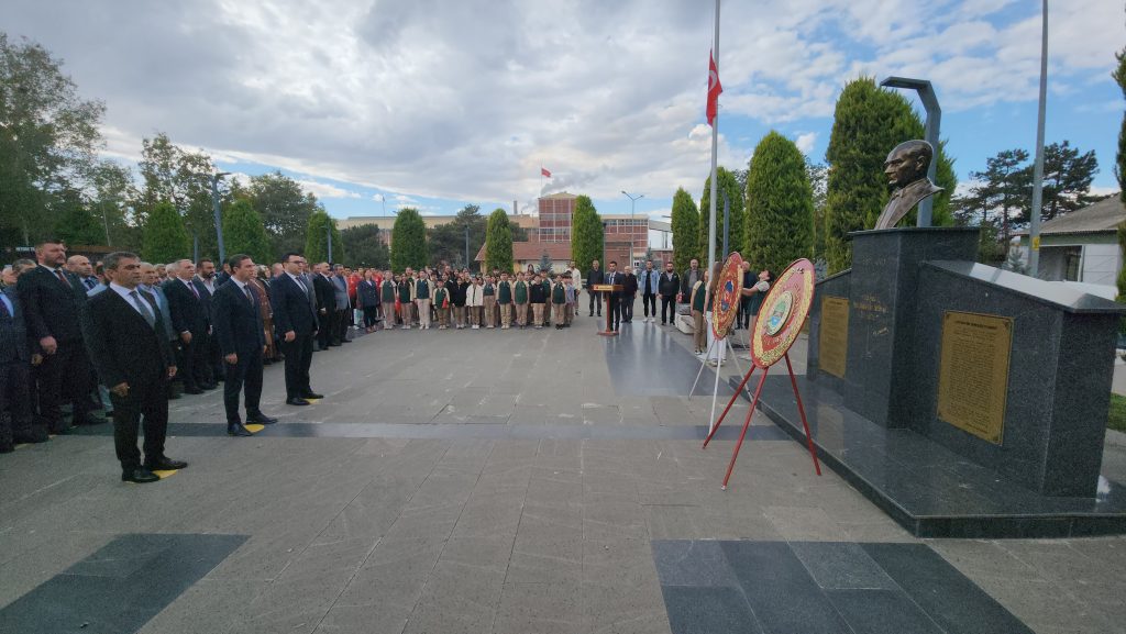 Burada ki törende, İlçe Kaymakamı Şafak Gürçam ile Belediye Başkanı Rıfat Uzun, Atatürk anıtına çelenk sundu.