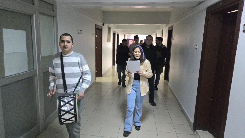 Okul öğretmenleriyle birlikte İlçe Milli Eğitim Müdürlüğüne sürpriz ziyarette bulunan özel öğrenciler, ramazan ayının vazgeçilmezi davul eşliğinde maniler söyleyerek kurum çalışanlarının ramazan aylarını kutlayıp imsakiye ve ikramlar verip ramazan ayına kavuşmanın sevincini paylaştı.