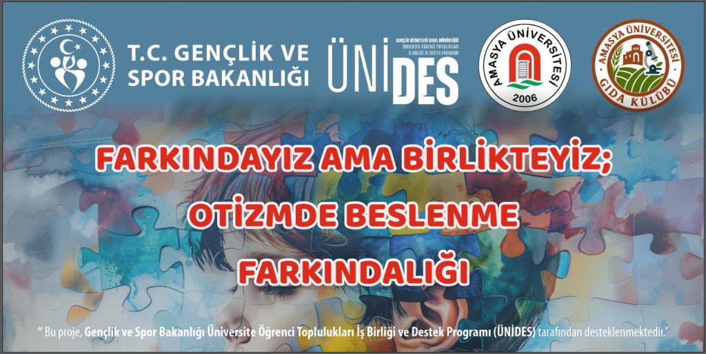 -T.C. Gençlik ve Spor Bakanlığı Üniversite Öğrenci Toplulukları İş Birliği ve Destek Programı(UNİDES) tarafından kabul edilerek desteklenmeye hak kazanan Amasya Üniversitesi Suluova Meslek Yüksekokulu(MYO) Gıda Kulübünün ‘Farkındayız ama Birlikteyiz: Otizmde Beslenme Farkındalığı Projesi’nin eğitimleri başlıyor.