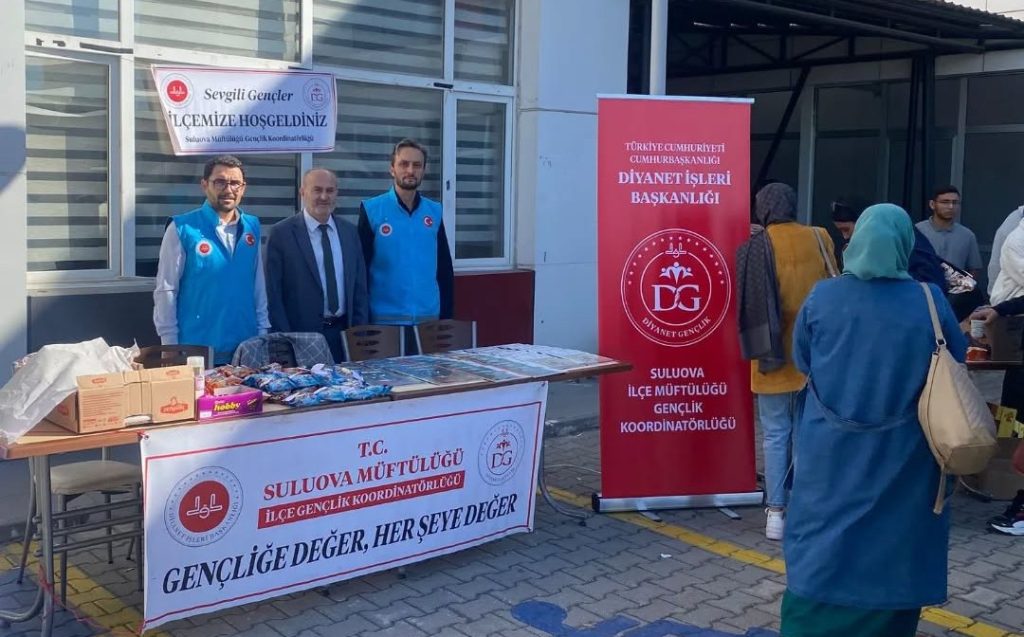 -Suluova İlçe Müftülüğü Gençlik Koordinatörlüğü tarafından Suluova Meslek Yüksek Okulu’na eğitim görmek için gelen üniversite öğrencilerini karşılamak için stant kuruldu.
