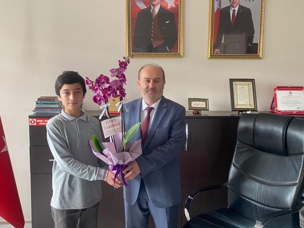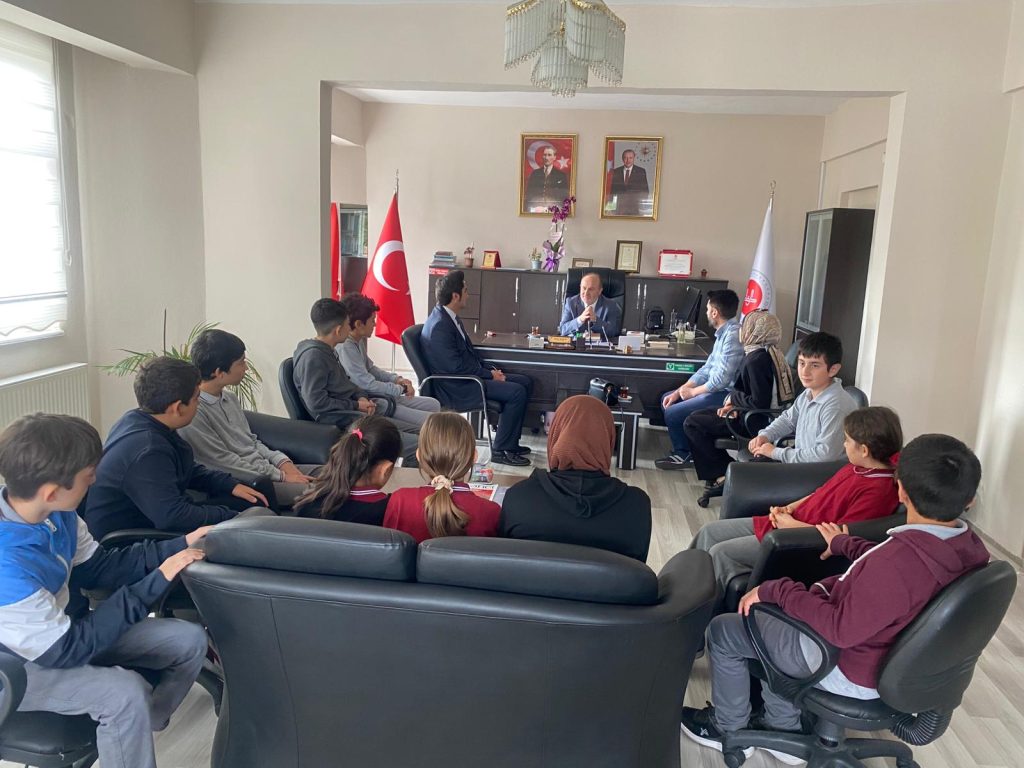 Okul müdürü Zafer Türkmen ve öğretmenler riyasetinde gerçekleşen ziyarette İlçe Müftümüz Sıtkı Kaya öğrencileri makamında misafir etti. Haftanın önemi dolayısıyla İlçe Müftümüze çiçek hediye edildi.