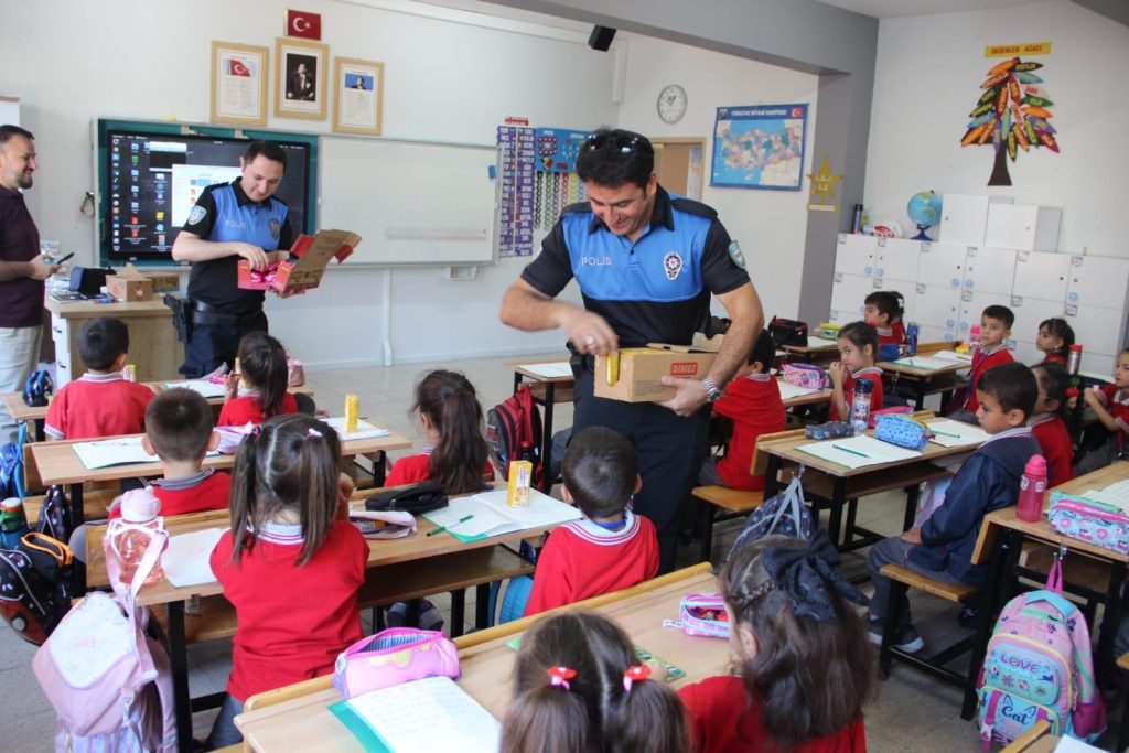 Bu kapsamda TD Polisleri tarafından öğrenciler, okula giderken ve dönerken dikkat etmeleri gereken trafik kuralları hakkında bilgilendirildi.