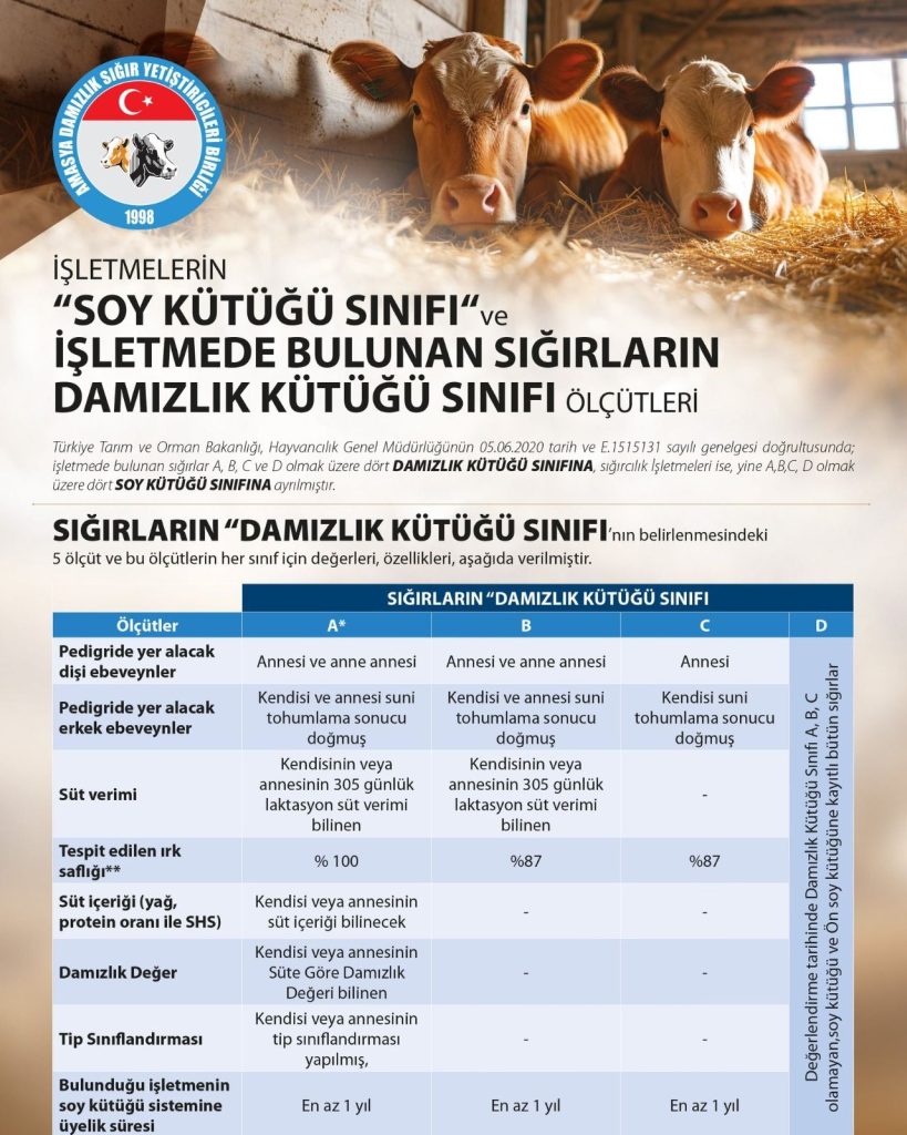 -Amasya Damızlık Sığır Yetiştiricileri Birliği, işletmelerin soy kütüğü sınıflandırması kriterlerini paylaştı.