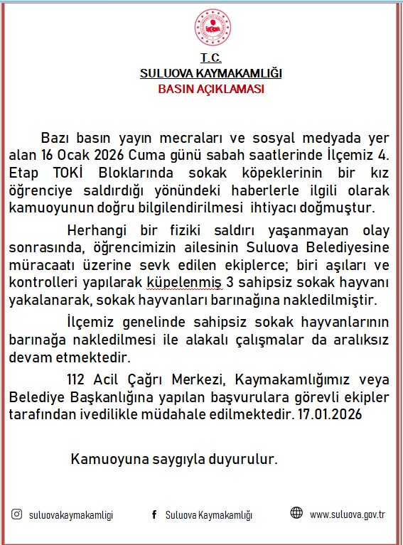 SULUOVA KAYMAKAMLIĞINDAN BASIN AÇIKLAMASI !