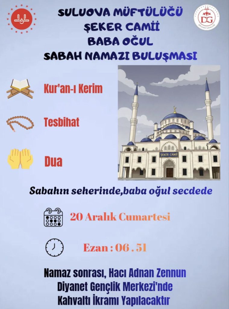 SULUOVA MÜFTÜLÜĞÜNDEN SABAH NAMAZI BULUŞMASINA DAVET !