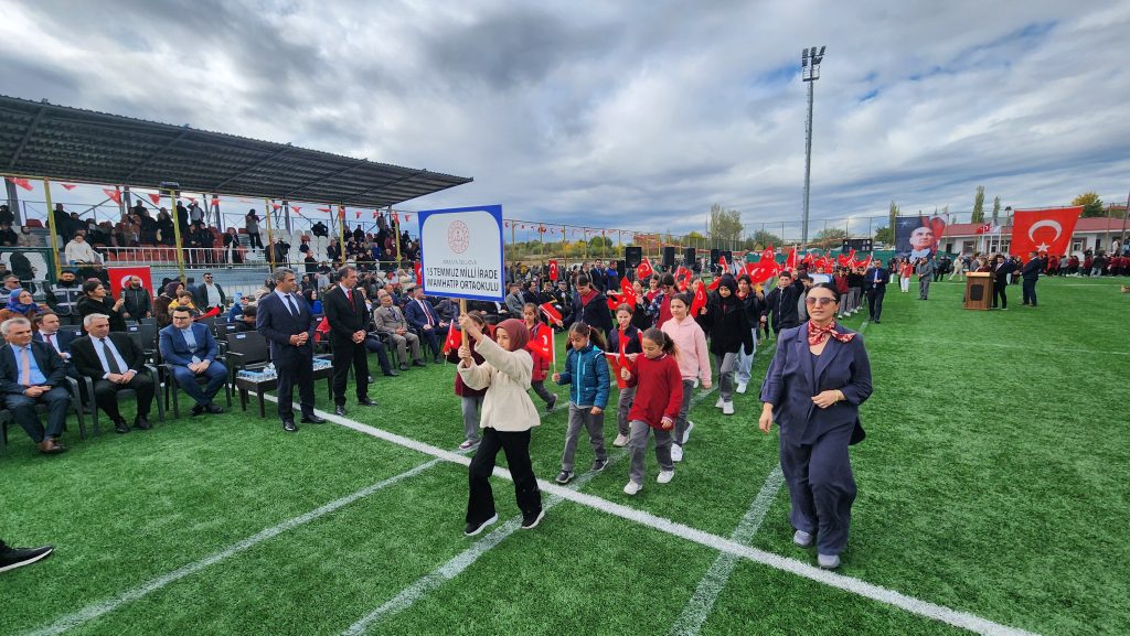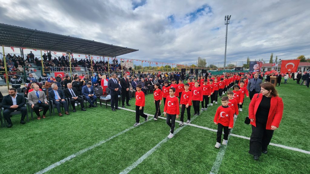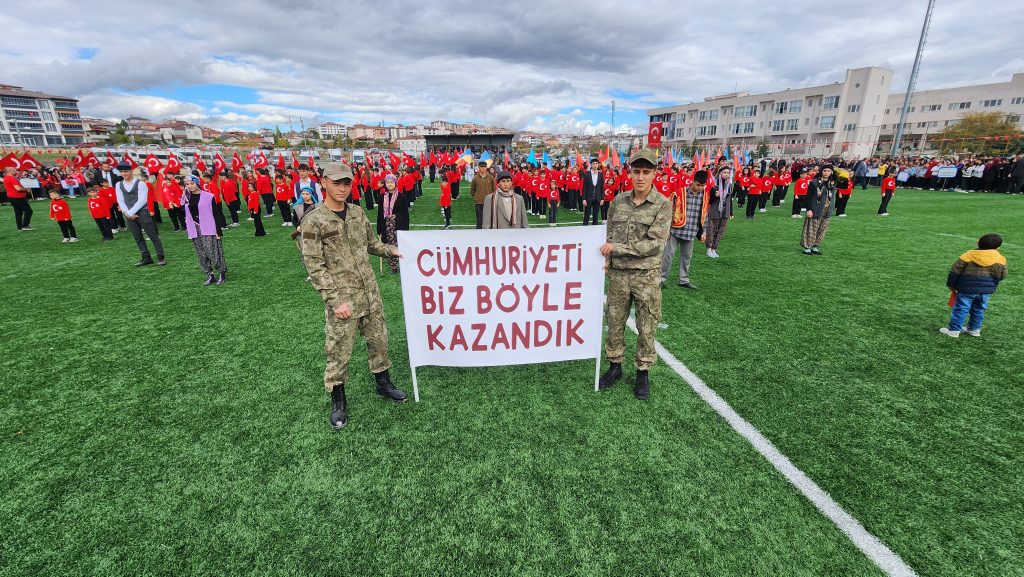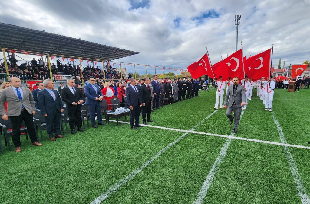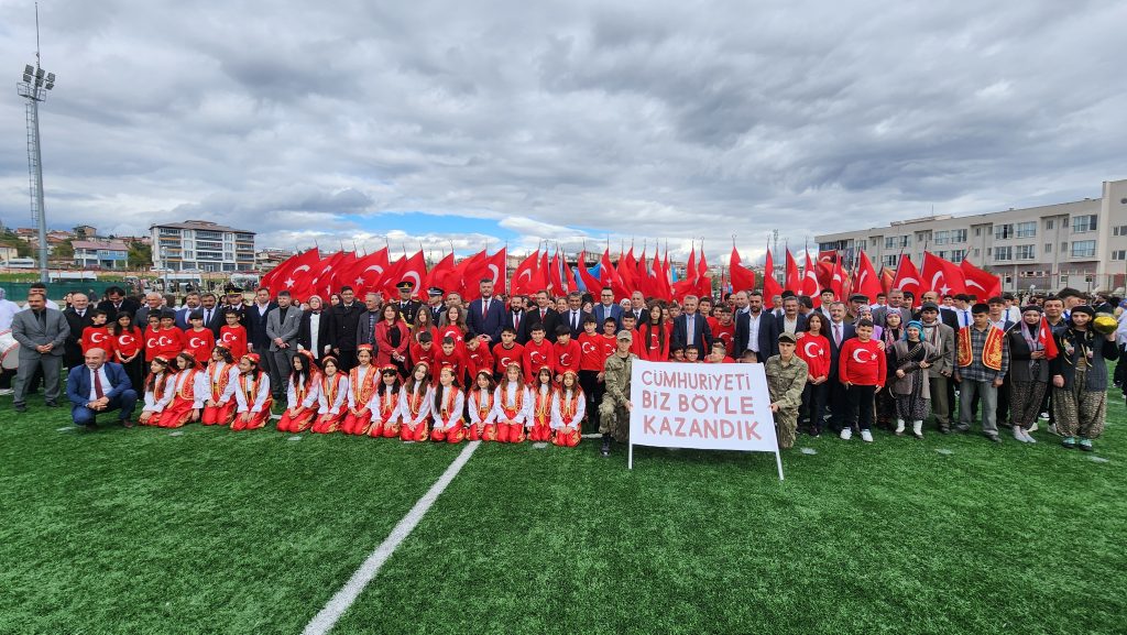 Sentetik Çim Sahada düzenlenen ve vatandaşlarımızın da ellerindeki bayraklarla yoğun katılım sağladığı kutlamalar saygı duruşu ve İstiklal Marşının okunmasının ardından Kaymakam Şafak Gürçam ile Belediye Başkanı Rıfat Uzun’un öğrenci ve vatandaşların bayramını kutlamasıyla başladı.