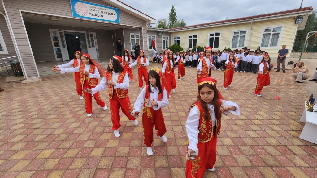 -Suluova’da düzenlenen İlköğretim Haftası kutlama programı kapsamında Hükümet konağı önünde yapılan törende İlçe Milli Eğitim Müdürü Ahmet Davu, Atatürk büstüne kurum çelengini sunmasının ardından saygı duruşu ve İstiklal Marşı okundu.