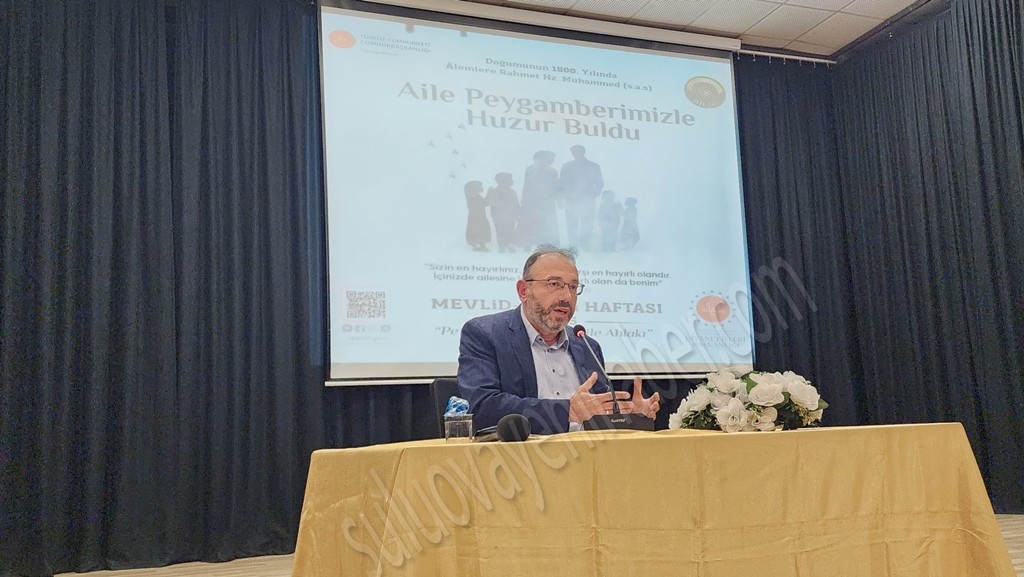 Ardından bir konuşma yapan İlçe Müftüsü Sıtkı Kaya; “Bu konferansın, Sevgili Peygamberimize ümmet olmamız, ona olan sevgi, muhabbet ve vefamız adına onu anmak, hatırlamak, bununla da yetinmeyip Peygamberimizin sünnetini kavramak, ahlaki ile ahlaklanmak, onun gibi yaşamak, örnek hayatını hayatımıza örnek almayı vesile kılar inşallah. Bu yıl sevgili Hz. Peygamberimizin doğumunun 1.500. yılı olması münasebetiyle Sayın Cumhurbaşkanımızın uhtesinde, Diyanet İşleri Başkanlığı ülke genelinde ve İlçe Müftülüğü olarak bizde taşrada inşallah yıl boyu Sevgili Peygamberimizi, onun hayatını, ahlakını, aile hayatı üzerine bir takım etkinlikler gerçekleştireceğiz. Onu anlama, anlatma, ahlakıyla ahlaklanma ve onu tanıma yılı olacak. Bu kapsamda Mevlid-i Nebi Haftası dolayısıyla konferansımızı gerçekleştiriyoruz. Konferans dolayısıyla Sayın hocamıza ve herkese teşekkür ediyorum.” Dedi.