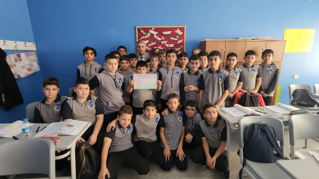 Sınıflarda yaptıkları çeşitli anlamlı etkinliklerde Filistin-Gazze ve Sumud filosuna desteklerini ortaya koyarak yaşanan insanlık dramına dikkat çeken İmam Hatipli öğrenciler, Filistin-Gazze temalı resimler çizdi. Şiir ve ağıtlar seslendirdi. Okul bahçesinde ise oluşturdukları koreografi ile büyük Türk ve Filistin bayrakları açarak “Filistin-Gazze susarsa insanlık susar” ve “Özgür Filistin” diye sloganlar attı.
