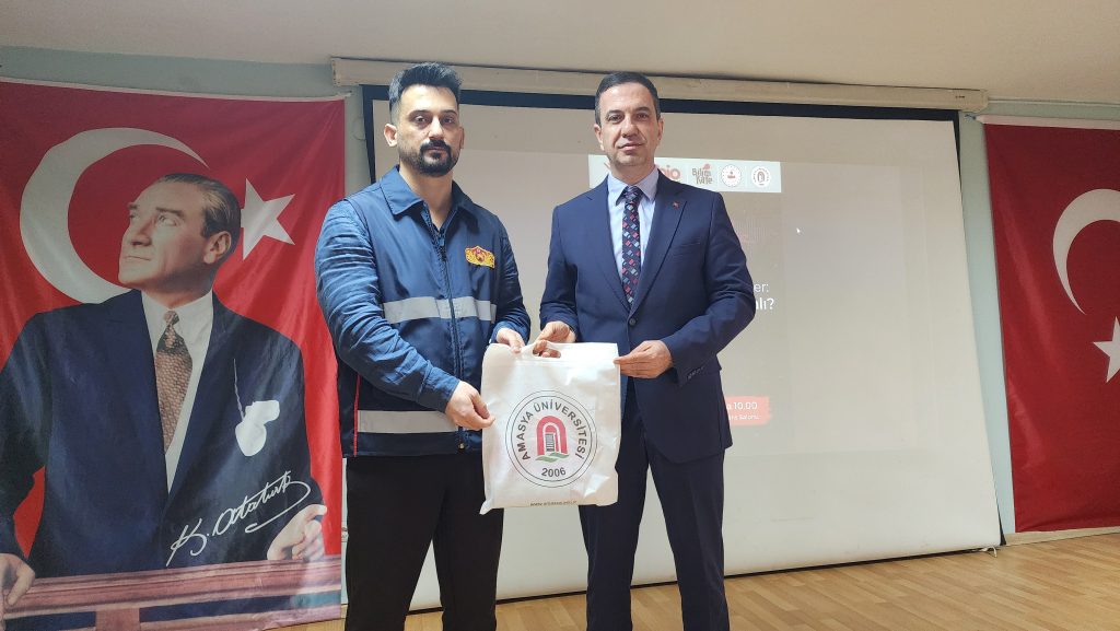Öğretmenevinde düzenlenen ve toplumun deprem farkındalığını artırmaya yönelik anlamlı bir projeye imza atılan programda MYO Öğr. Gör. Dr. Can Şahan, ülkemiz ile birlikte Amasya ve Suluova ilçemizin de deprem riski altında olduğunun altını çizdi.