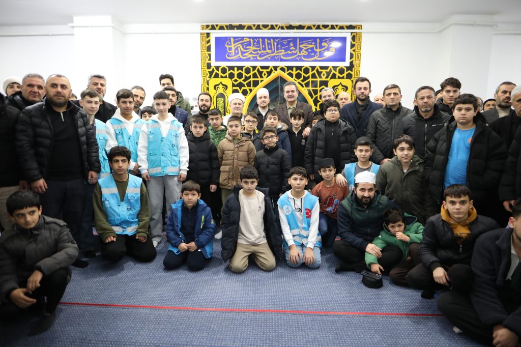 Çocukların babaları ile birlikte sabah namazına katıldığı buluşmada İlçe Müftüsü Sıtkı Kaya ‘cami, namaz ve gençlik’ konularında vaaz ederek dualar yaptırdı.